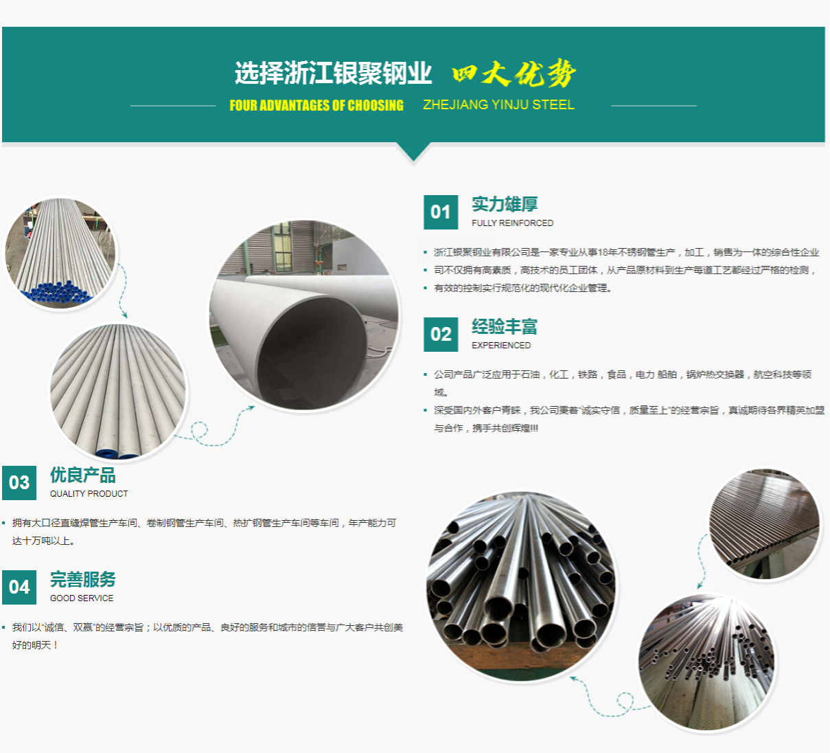 Copyright @ 浙江銀聚鋼業有限公司-不銹鋼管廠家 版權所有 | 單位地址:浙江省溫州市龍灣區永中街道 生產基地:浙江省麗水市龍泉市塔石鎮金崗工業園區 浙ICP備2021034082號-8